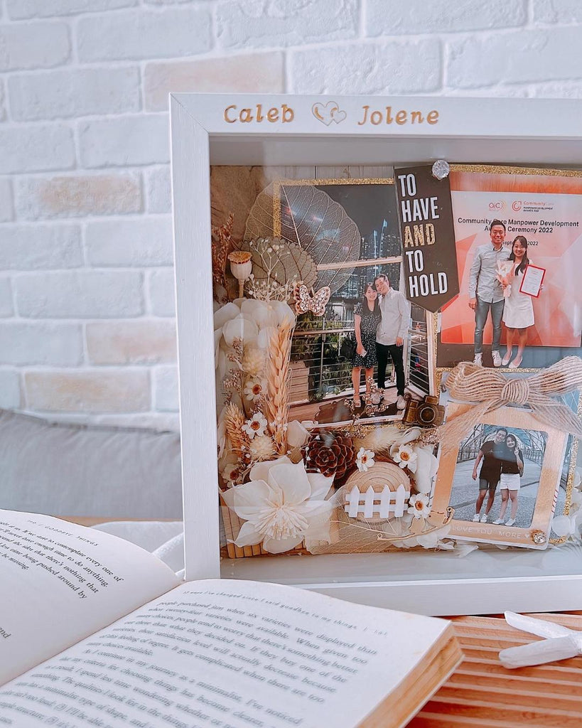 - Customised with 2 pieces of photo with preserved flowers